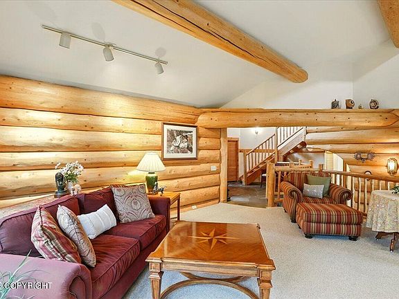 Perched in prestigious Stuckagain Heights, this grand 4,300+ sq ft log home offers sweeping 180 views of the mountains and inlet. Featuring 4 beds, 3.5 baths, a spacious office, MIL retreat, maple floors, granite finishes, and a stunning granite fireplace. Unwind in the wood hot tub on the expansive deck overlooking the iconic Sleeping Lady. Alaska luxury at its best.