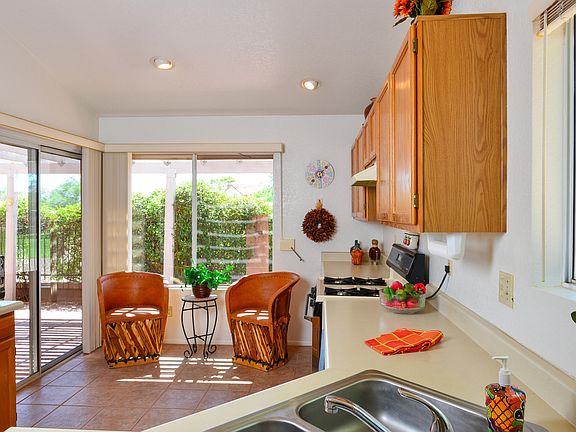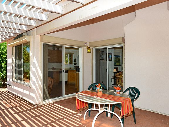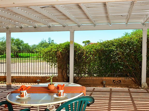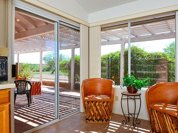 Absolutely charming 2 Bedroom, Den and 2 Bath patio-style 1,307 SF home with split layout and 2-car garage on cul-de-sac. Wonderful west-facing patio overlooks golf course and includes pool and spa to create your own private resort. Wood-burning fireplace graces the open great room with high ceilings. Mature fruit trees and wonderful sunset views! Rolling shutters on west-facing windows facilitate seasonal ownership by maintaining cleanliness and/or energy savings during AZ summers. Most furnishings can be included if desired. Guard gated Oro Valley community close to shopping and restaurants. Perfect annual, seasonal or vacation home!