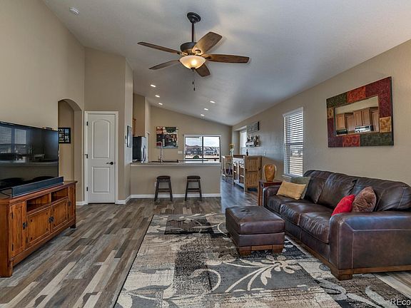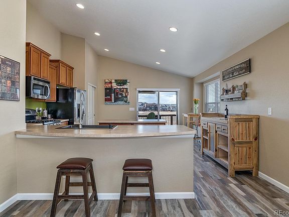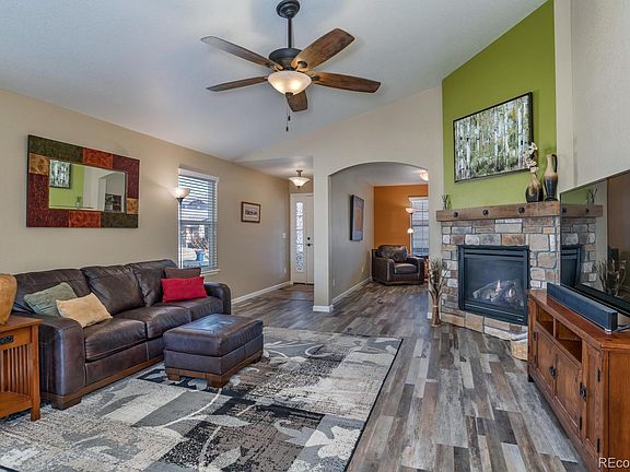 Immaculate ranch-style home which backs to Second Creek open space, great privacy and stunningly clean and well kept! Gorgeous mountain views! Bright, open layout perfect for entertaining with extensive vaulted ceilings. Awesome, durable luxury vinyl flooring throughout. Bright living room is flooded with natural light, ceiling fan and cozy gas log fireplace with stone surround. Spacious kitchen includes eat up bar, stainless steel appliances including gas 5 burner stove/range, very pretty cherry cabinets, crown moldings, rollout drawers, island, huge pantry, and sliding glass door to wonderful covered deck, great for summer parties or enjoying watching the storms roll over the Rocky Mountains! Comfortable main floor master suite features vaulted ceilings, overhead ceiling fan and light, large walk-in closet and pristine 3/4 master bathroom. Main level den/study is open beautifully to the family room creating a true spacious floor plan. Huge professionally finish walkout basement is perfect for entertaining and includes a built in wet bar, pergo floor, sleek gas floor fireplace, surround sound, full bath & to-be bedroom area, and a hobbiest dream workshop! Fully fenced private professionally landscaped yard with huge cement patio off walkout basement, extra paver patio, garden beds, plus HUGE amazing 2-level trex deck. Nice covered front porch with sunny driveway exposure. Laundry room and mudroom/drop zone off the oversized fully finished 2.5-car garage with extra storage and natural light! You will not be disappointed in the seriously immaculate property inside and out. Don't miss it, the ones on open space don't last long!