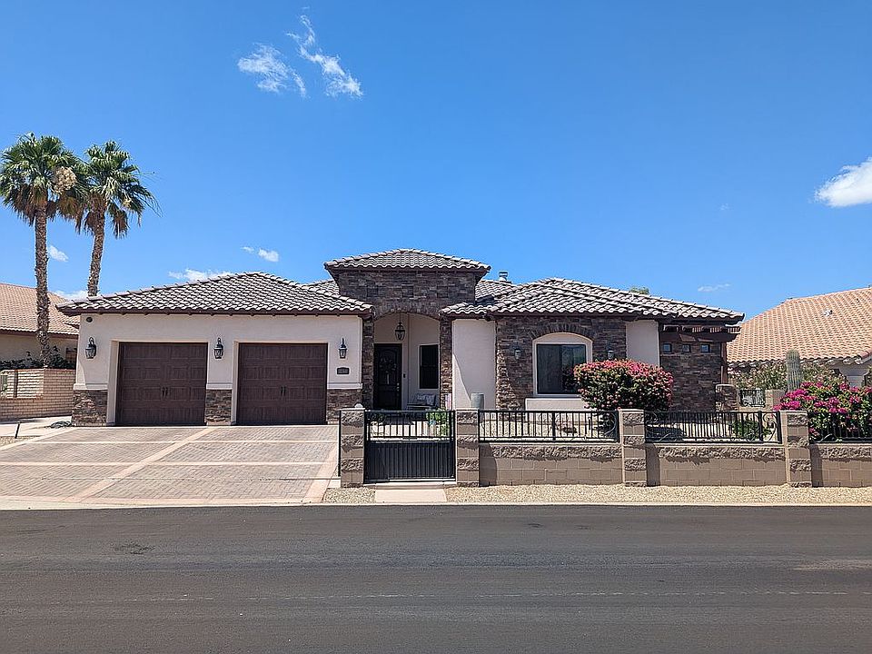 Gorgeous custom home located on the 15th tee box of Mesa Del Sol Golf Course. Perfect location with golf course views in the back and mountain views from the front. The house has 3 bedrooms, an 11' x 12' office room with a closet, window and ceiling fan that can also become a bedroom, 2 full bathrooms, a bathroom/powder room, the kitchen of your dreams, fireplace, pre-wired security system, power rolling security gate, oversize garage and doors (8’), tankless water heater, RO system and water softener. Outside has beautiful mature plants, a saguaro cactus, water feature at the front entrance, a gorgeous gas fire pit in the back, and a swimming pool with a Jacuzzi! This could be your Dream Home!!!