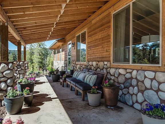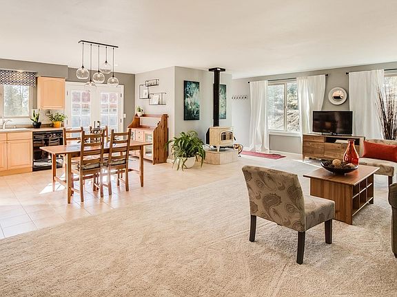 Ideal location and gorgeous setting,7+ acres of nearly flat,completely usable land surrounded by stunning mountain views,easy access and total seclusion. The 1,298 sq.ft. main house has been tastefully updated with modern colors and finishes.Large, open living area, huge picture windows, cozy high-end wood stove and brand-new carpet. Spacious kitchen with new stainless appliances, tile flooring, and eat-in space too. The main bathroom has been totally re-done, every detail is new and fresh. 2nd bath is updated too. Private fenced-in yard and built-in perennial flower/herb gardens. New Impact Resistant Roof on Home and Garage. Garage is a 2-Story, 4-Car mechanics dream. Drive-thru, extra-tall door, built-in work-benches and shelving, large wood stove,and floor bolts for car-lift. Upper level boasts 1240 sq.ft. of newly finished living space, complete with hard-wood floors,kitchenette,full-bath, built-ins, multiple levels, and magnificent light. Too many options to mention! Welcome Home!