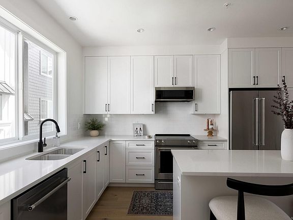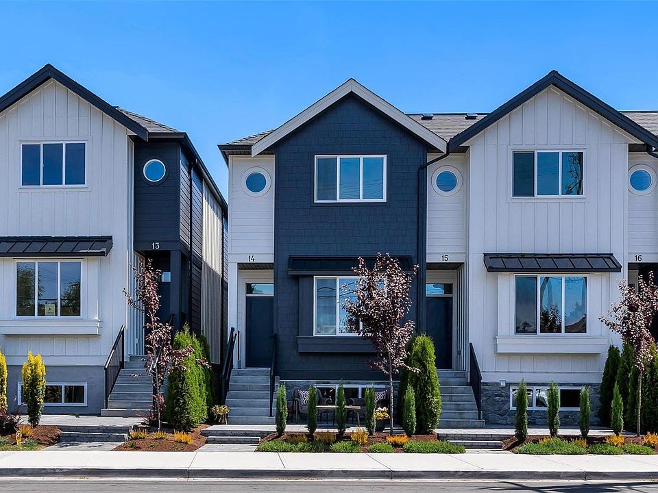 OPEN HOUSE Saturday 1-3PM. Proud to present The Bayside Towns on Fifth - a curated collection of 16 townhomes in Sidney's most desirable neighbourhoods, ROBERT'S BAY. Offering a modern farmhouse aesthetic & varied layouts appealing to young families through to active retirees. This plan offers 3 beds, 3.5 baths, 9' ceilings on main and upper level and oversized single car garage. Light wide-plank hardwood throughout main level & large picture windows will keep the home light & bright. Custom white kitchen cabinets with quartz counters, generous island & stainless steel appliances. Laundry room with sliding barn door on upper level. Efficient heat pump for year round heating and cooling. In-floor heat in all tiled bathrooms, both upper level bedrooms with their own ensuite. Interlocking brick, sunny patio with irrigation. Close to beaches, trails and easy walk to Beacon Ave, this is a 12/10 location!