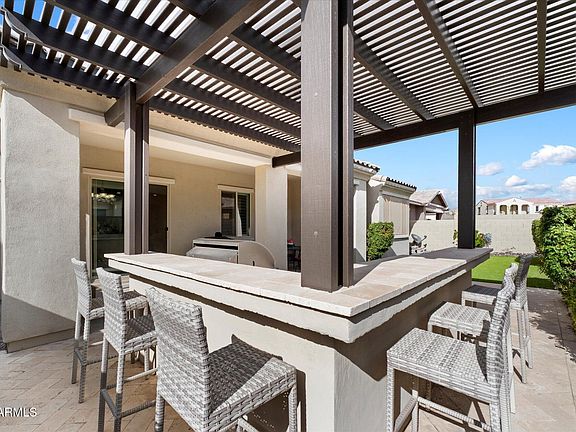 Pristine Maracay home built 2018. 20'' Neutral tile laid ''diamond style'' throughout home-no carpeting!2425 Sq Ft interior with great room and open floor plan.Large Main suite split from 2 guest rooms/bathroom and office for privacy. Ceiling fans T/O. Beautiful open kitchen with breakfast bar/island and built in buffet/storage counter, gas stove, RO system,double ovens,built -in microwave,large pantry and deep drawers for storing pots and pans. Low maintenance backyard with landscape lighting, built- in grill, turf,and covered patio. Home has been lightly lived in. Keep reading... -house is not sticky!Tandem 3 car garage.Tons of storage,including garage racks overhead.Water softener, washer,dryer,ref and separate freezer, in LR, security cameras and Simply Safe alarm remain.Ring alarm does not remain. Eastmark is a master planned community with events, Skate Park, Tot Lots, Sport Court, Ball Fields, and a Community Pool. Basis Mesa, Sequoia Pathfinder Academy and Eastmark Junior/High School are nearby.