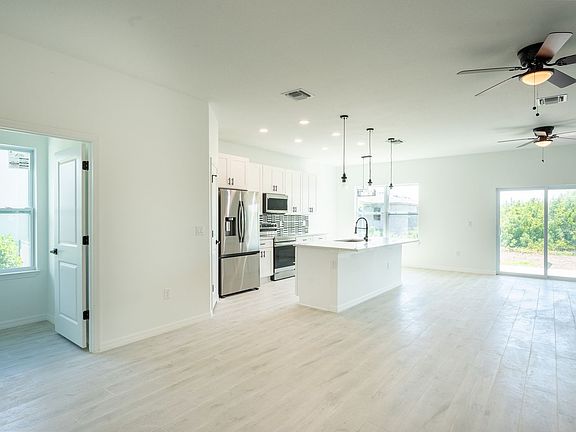 LOCATION LOCATION MOVING READY , NEW CONSTRUCCION. Exclusive community, with common access to the water for residents with their boats, jet skis, launches, yachts . This spacious and modern home boasts over 1, 700 square feet of living space and a beautiful Lanai, features an open-concept floor plan perfect for entertaining guests, 9.2 feet high ceilings, quartz counter in the kitchen and bathrooms, state-of-the-art appliances, Impact Glass windows. The main living area is highlighted by tall ceilings and large windows that flood the space with natural light. The kitchen is a chef's dream with quartz countertops, stainless steel appliances, and ample 42-inch cabinet space for storage. Enjoy meals with family and friends in the adjacent dining area, perfect for year-round gatherings. Retreat to your luxurious master suite complete with a spacious walk-in closet and en-suite bathroom featuring dual sinks and a walk-in shower. Three additional bedrooms and an additional full bathroom with quartz countertops ensures everyone has their own space provide plenty of space for family and guests, and an additional full bathroom ensures everyone has their own space. This home also features an indoor laundry room and a two-car garage, making daily life easy and convenient. Plus, with a new construction home, you can enjoy peace of mind knowing that everything is brand new and under warranty. Located in the thriving community of South Gulf Cove, this home is just minutes away from stunning Gulf Coast beaches, world-class dining, fishing, and shopping. Don't miss this opportunity to live in a beautiful new construction home in one of Florida's most sought after locations!