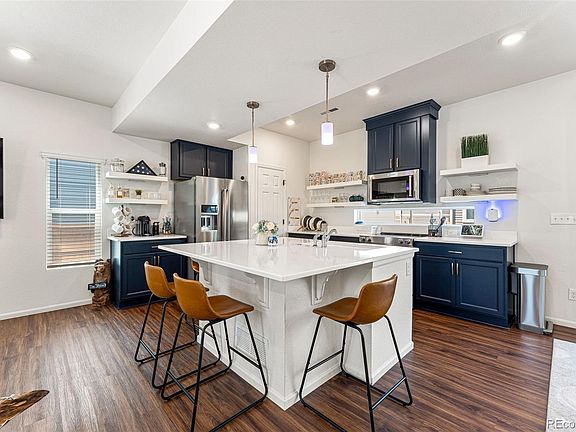 The listing price comes with a thrilling bonus: a CONCESSION of up to $7,500 at closing making this remarkable opportunity even more irresistible! This house is MOVE IN READY, all you need to do is unpack & start enjoying! This exclusive Elevation C design is the only ONE OF IT'S KIND, with unique blend of modern aesthetics & functional living. This home is an absolute gem! 3 spacious bedrooms, 2 and a half bathrooms, and wait for it... the primary suite steals the show is like stepping into a luxurious retreat with vaulted ceiling, creating an airy, open ambiance, perfect for unwinding after a long day. Plus there are an abundance of bonuses in this home! Calling all tech enthusiasts -This place is decked out with an Electric Car conduit ready to power up your ride, Samsung Smart Washer/Dryer that'll revolutionize your laundry game, and a Smart Garage Door Opener for the ultimate in convenience/security. But wait, there's more! TONS OF BONUSES! Step into the garage & prepare to be amazed. It's not your average parking space - oh no! This garage is a haven of style & functionality, finish and accentuated large windows that flood the space with glorious natural light. It's the perfect spot for all your hobbies, storage needs, and so much more! The heart of the home, the kitchen, is equipped with a Kitchen Aid appliance set, Quartz countertops and an extra-large chef's island - a true entertainer's delight. The home extends outdoors to an extra-large backyard patio, making it a perfect spot for barbecues or a serene morning coffee spot. Also, there's plenty of space for entertainment & pets to enjoy. The HOA handles front landscaping, snow removal, and offers an abundance of amenities! Location is key, and this home is ideally situated close to Denver International Airport, making commuting/traveling a breeze. Don't miss this opportunity to secure a unique, upgraded home in a convenient location. It truly is a must-see!