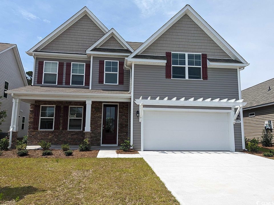 Our Forrester plan is a well appointed two story home with a picturesque front porch and screened back porch, formal dining area, and a huge kitchen island! The kitchen features white painted cabinetry, granite countertops, and stainless Whirlpool appliances including a gas range. A bedroom and full bath on the first floor are perfect for guests visiting you at the beach while the grand owner's suite, two additional bedrooms, the laundry room, and a large bonus room over the garage are upstairs. This home is located on a beautiful lot in a brand new natural gas community in Carolina Forest! The Parks of Carolina Forest is a picturesque setting of ponds, an amazing amenity center, and park of the majestic "Ten Oaks" with a walking trail to get to the Carolina Forest library. *Photos are of a similar Forrester home. (Home and community information, including pricing, included features, terms, availability and amenities, are subject to change prior to sale at any time without notice or obligation. Square footages are approximate. Pictures, photographs, colors, features, and sizes are for illustration purposes only and will vary from the homes as built. Equal housing opportunity builder.)
