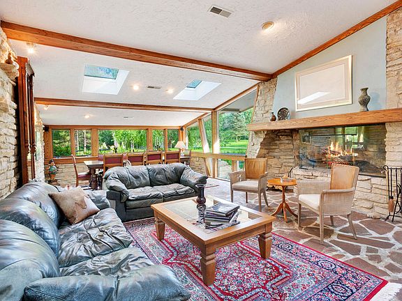 Great architecture is art that inspires, comforts, surprises and brings joy. Find that artistry in the craftsmanship and design of this classic mid-century modern home! Updated kitchen, bountiful windows, one-of-a-kind stone floor, custom fireplace. Inside and out, one can revel in the details. Meander down the paths to the River. Spend your days kayaking or fishing on the Milwaukee River and evenings with friends on your award winning Treetops Landscaping designed private blue stone patio and yard. The yard includes a target green (fashioned after 14th hole at Fire Ridge Golf Course) with two tee boxes for your golfing enjoyment as well as a magnificent pond and waterfall. This home is impeccable and shows the love it has received. Only 2 blocks from the Interurban Trail!