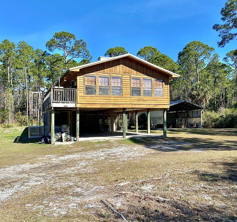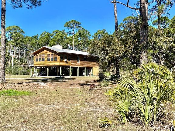Gorgeous home and land located on 2.3 Acres in Gulf County Florida. Nestled in between Indian Pass, Cape San Blas, Apalachicola and Port Saint Joe on HWY C30A. This home features two bedroom, one bath, custom built with fireplace, vaulted ceiling, and pecky cypress wood. Fisherman's paradise with plenty of room to park boats, a pole barn with cement slab to park your RV, fishing cleaning stations, and power assist lift elevator on the outside. Call today to see this home.