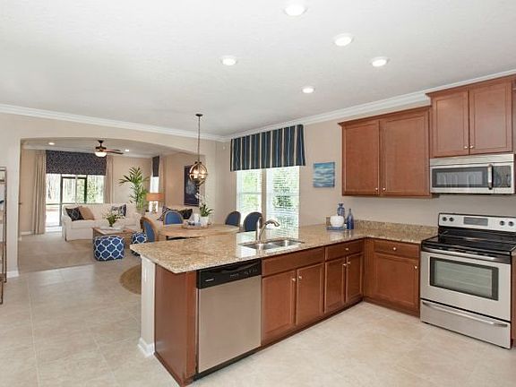 This home is located on one of our last homesites. The Cordova isone of the top selling models in this Longleaf neighborhood. This floor plan has all ei+ <Everything Included Plus> which adds a great deal of extras already included. The floor plan walks in to a formal foyer with 18" tiles, with a formal dining room in the entrance. Open island style granite kitchen with stainless steel appliances included/ 42" cabinets Separate laundry room with Frigidaire washer and dryer included. Large pantry. Café area is tiled with pendant lights over island, blinds included, double pane windows included. Large gathering room with LED down lighting and a triple sliding glass door which leads out to the oversized screen enclosed lanai with cable connections and electrical outlets for those cool breeze afternoons. The master has a large walk in and well lit room, 3 fans in the home (master/ living/ lanai). Master bath has a large shower and soaking tub. The 2 bedrooms have a common extra large bath. Home features Nexia home Automation included which allows you to control the Trane thermostat which keeps the Lennox 15.2 seer HVAC unit in optimal control. Paved walk ways and driveways also are included and coach lights on the front of the garage are also included. St. Augustine sod / and the landscape package with sprinkler system included.