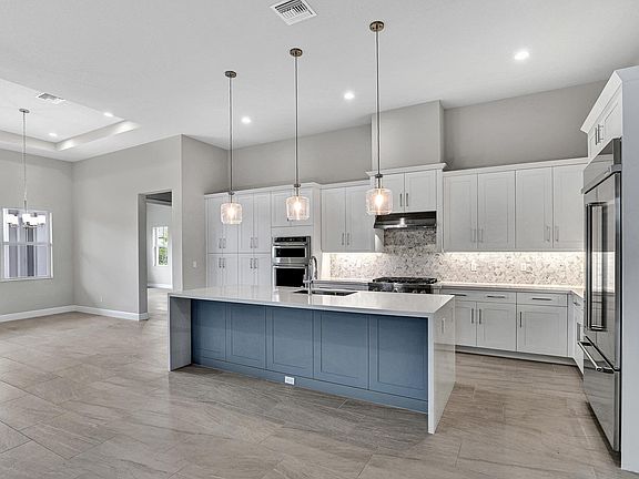 This stunning Joliet home is Move-In Ready. Experience refined living, clean architectural lines and a sophisticated color palette in this home. Soaring ceilings of the foyer welcome you into an expansive open-concept living area. This home features private en-suite guest accommodations and high-end finishes throughout. Elegant porcelain tile flooring flows seamlessly through the space, while the gourmet kitchen impresses with two-tone cabinetry, upgraded appliances, a striking gray-and-white backsplash, and a spacious center island--ideal for hosting gatherings in style. The oversized primary bedroom suite offers a luxurious retreat and the versatile flex room can be tailored to fit your lifestyle. This home is located just steps away from the community clubhouse.