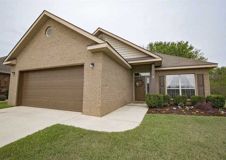 Charming corner lot home with private back yard retreat! As you enter your front door you are greeted by the open floor plan and brand new laminate floors. Kitchen features eat in dining and breakfast bar. Master suite includes soaking tub, separate shower and double vanities. Walk-in closet for ample storage. Large patio for seating to enjoy the trees, birds and wild-life. This home backs up to privately owned land and will not be part of the new neighborhood being built. The Dunmore Community is part of the highly desired Fairhope School System! HVAC is less than 1 year old and well maintained improving the utility bills. VA Assumable loan available. Neighborhood in an active community and features a large fishing pond available for residents and guests.