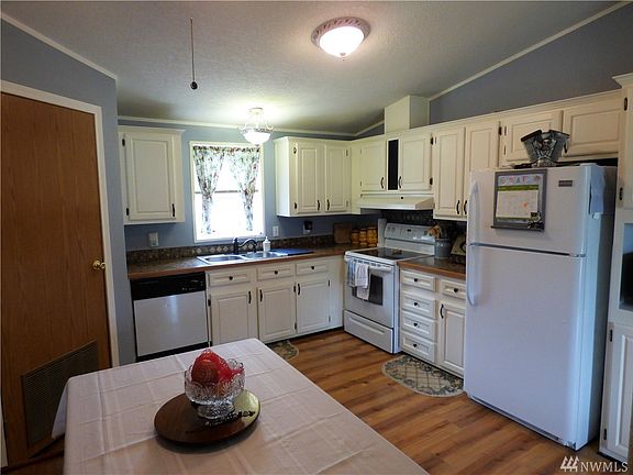 Live in the country! This home is on almost 5 acres with pasture for animals. It's a 3 bedroom 2 bath home with a separated master suite. There's an eat-in kitchen with all of the appliances included. There's a double detached garage with a wood stove and 10' workbench included. Out back there's a hay shed, pump house, and 2 other sheds and a metal storage container with roll up door for lots of storage. You'll love the wide open spaces! Come see it now!