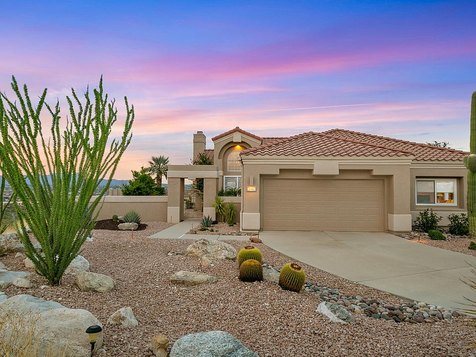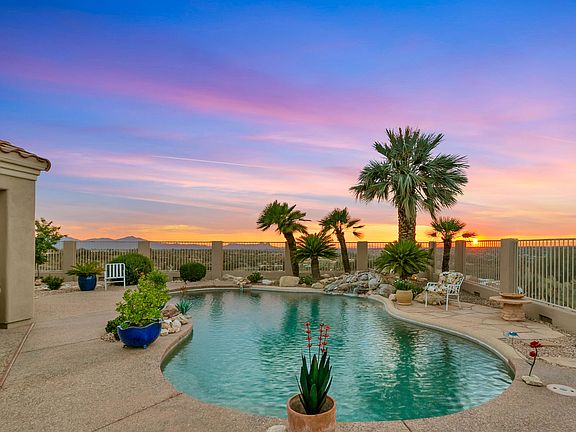 Private.... Stunning.... Turnkey. This amazing home has views that are unrivaled. Incredible views of the Catalinas, Tortolitas, & Tucson Mtns and the remarkable valley below. Your views seriously never end as you have no neighbor on the western side so from the private sanctuary of your back yard you will bask in your beautifully designed yard with a stunning pool, waterfall, palm trees & low care desert landscape. It will feel like you're in your own private spa & you will NEVER want to leave. This 3 bedroom, 2.5 bath home is on one level & has been very obviously lovingly maintained. A 2019 installed 16 SEER HVAC system is super energy efficient along with a newer filter on the pool. This is truly move in ready in a gated community. Just bring you furnishings & you're all ready to go