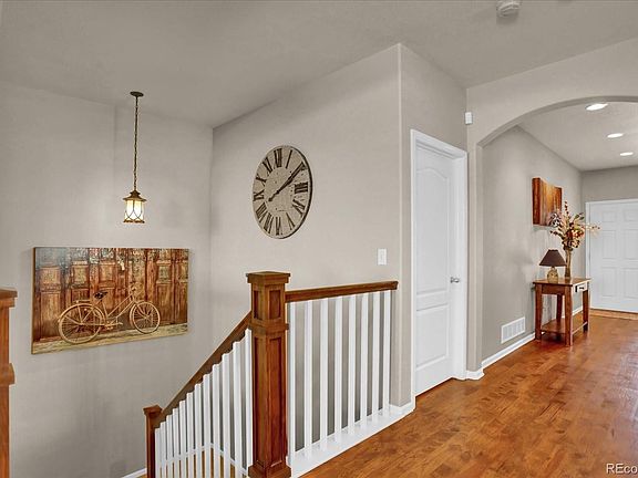 Finally! Enjoy all your living on ONE floor with this affordable luxury living just 10 minutes from DIA! Your friends & family will be impressed starting at the front door with gorgeous Hickory flooring throughout. There are 2 guest bedrooms with a full bathroom in between which are located near the front of the house and separate from your private-oasis primary suite. The primary bathroom will make you feel like you just stepped into a spa, complete with 5-piece bath and access to your huge walk-in closet. Each bedroom has Ceiling fans, room for your bed-size choice and tons of closet space. If you like to entertain, this home is for you! The kitchen has upgraded cabinetry, granite countertops, a large kitchen island and an eat-in dining area. Holiday entertainment is easy with an added formal dining room. Need more room? There is a full unfinished basement with a rough-in bath and crawlspace. You're going to love those hot showers and efficiency from your tankless water heater! And the whole house water filter and softener system will further spoil you. You'll love the outside too as it has been professionally landscaped. From the back door patio to the side door to the garage, each area has been designed for added privacy and a pleasurable outdoor setting. The home is located on a huge corner lot giving you lots of parking capability as well. Sooo many upgrades, you’ll just have to come see for yourself!
