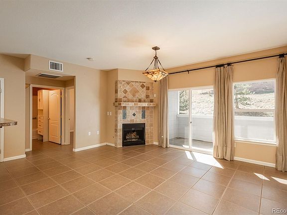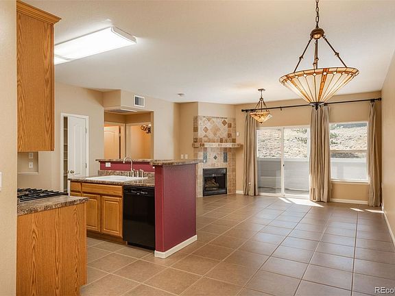 This delightful first-floor one-bedroom condo is just a short stroll from Stenger Sports Complex and only blocks from the vibrant Olde Town Arvada, where you can enjoy a variety of dining options, shopping, and easy access to public transit. The condo features a spacious open floor plan that includes a well-appointed kitchen, a cozy living room with a gas fireplace, and a dining area, all adorned with stylish tile flooring. The kitchen is designed for both functionality and style, featuring counter seating and modern black appliances, including a double oven with a gas cooktop. The primary suite is spacious and offers a private retreat. The bright living area opens to a private outdoor patio, perfect for enjoying fresh air and views. You'll find ample closet space and the convenience of an in-unit washer and dryer. This condo is bathed in natural light from its large windows, which overlook an open space, ensuring a peaceful atmosphere. With an attached one-car garage providing direct access to the unit, this home combines comfort and convenience seamlessly.