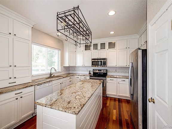 Must see this well-maintained home in Thornton! Located on a cul-de-sac, this home features 4 bedrooms, 3 bathrooms & a 3-car tandem garage. This very bright and open floor plan greets you with vaulted ceilings, beautiful wood floors, formal dining room and front living room area. Very spacious kitchen with granite countertops, kitchen island and plenty of cabinets and counter space. Has a pantry! Eat-in space off of the kitchen with patio doors leading out onto your backyard Trex deck area. Very private backyard! Open family room area with a cozy fireplace to keep you warm on a chilly Colorado night. Separate area for laundry. The upper level has 4 bedrooms with a large primary bedroom and vaulted ceilings. The primary bathroom has an oversized shower, double sinks and heated floors! Nice walk-in closet. Tons of potential with the unfinished basement! Enjoy relaxing on your front porch or backyard patio. The home backs up to open space and walking trails! Come and see everything that Harvest Ridge has to offer. Easy access to the RTD Light Rail system to Downtown Denver, close to I-25, shopping, restaurants, entertainment, parks & trails. All you need to do is move in and make this your happy home!