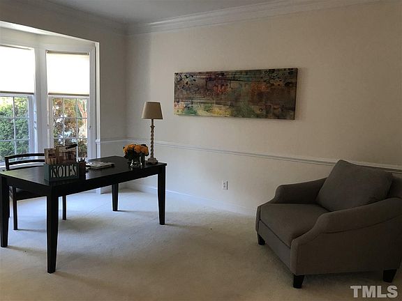 Special Brier Creek townhome in Talamore! ON GOLFCOURSE! Open pass-through between dining room and kitchen- a unique touch during construction to open up space. Generous layout with tons of light thanks to owner's attention to detail. Eat-in-kitchen w solid surface countertops & tiled backsplash. Newer HVAC. HOA maintained roof, and pristine garage. Paneled front refrigerator, induction range, Dacor oven & Bosch DW. Large mstr with WI closet. New carpet upstairs, fences allowed!