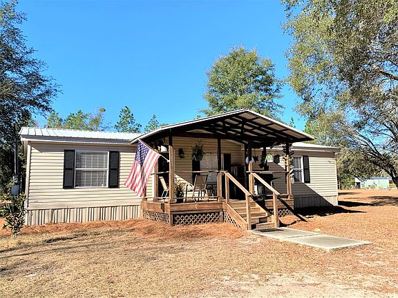 AFFORDABLE HOME & 5 ACRES in GILCHRIST COUNTY! Nicely remodeled 2001 Redman, doublewide split plan home has 3 BD and 2 BA and sits amongst a natural stand of oaks and other native trees that have been under brushed. An inviting covered front porch is an ample size for rocking chairs or a swing to sit and enjoy the quiet surroundings. Because the property is situated near the end of a private, dead-end road, there is no unwanted traffic, only deer, birds and the sounds of nature. The home already has a newer metal roof, beautiful wood laminate floors, newer bath and kitchen fixtures and is well maintained. Also at the back of the property, tucked behind some trees, are 2 utility buildings for plenty of storage but are not visible from the home. Call to view this property with NO deed restrictions and NO HOA! Cool, clear water comes right from the well here! The spring fed Santa Fe river is only minutes away! Come and experience county living in Gilchrist County!