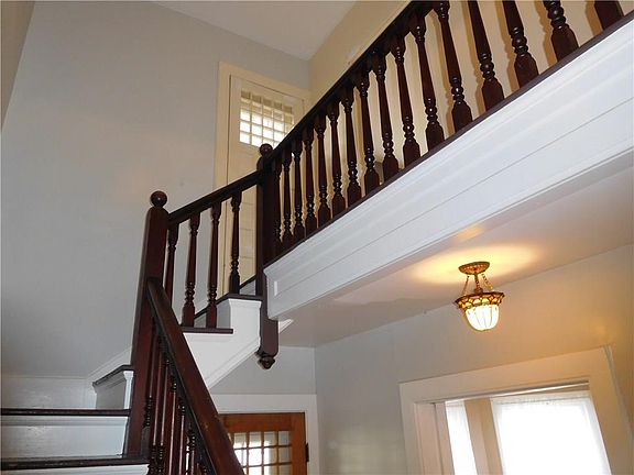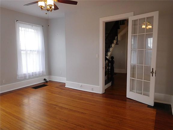 Stately Victorian Home, high ceiling on both levels, neat architectural details, cooks kitchen with formal dining room, separate living room and family room with french doors, large windows throughout for great light, half bath and laundry hookups on first floor. Dramatic staircase in formal entry. Second floor has 3 bedroom and 1 full bath. Master bedroom with adjacent nursery/office/walk in closet, 1 bedroom has second floor balcony, full walk up attic for storage, exterior with wrap around porch and back deck overlooking deep level yard. Exterior needs painted.