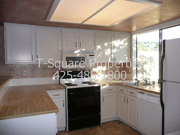 South Everett Condo in Main House. Spacious two+ bedroom townhouse. Pergo floors, custom molding. Huge master suite with full bath, jetted tub, skylights & private balcony. Garage converted to office/3rd bedroom with separate entrance. Oversized french doors lead to large laundry/utility/hobby room. Private dead-end-cul-de-sac, separate from rest of complex with only 3 other units. Clubhouse with pool, hot tub & sports courts. 1 cat or small dog under 15 lbs. ok. Mukilteo schools.