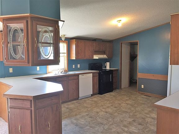 Large manufactured home, sitting on 5 acres, located southeast of Fort Scott on paved roads. The home offers a lovely covered front porch, sliding glass doors onto the back patio which overlooks the acreage, a smaller fenced in area for pets, and a small barn/shed. The huge 800 SF 3-car garage is insulated, and houses an 8-10 person Atlas safe room. Brand new carpet in 2018, HVAC new in 2014.