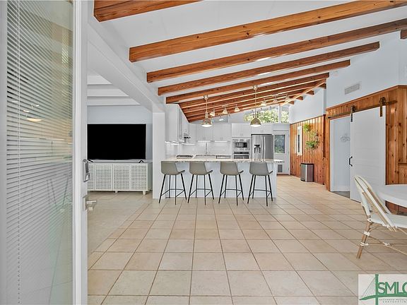 Welcome to this immaculate, move-in ready Mid-Century Modern home! Located on Tybee's quaint bike path and ONLY 2 blocks to our beautiful beach and the Atlantic Ocean. There are so few homes like this to come on the market. Walk into a very open floor plan with gorgeous kitchen and large breakfast bar featuring stainless appliances and under cabinet lighting. There are windows everywhere to enjoy natural light and coastal breezes.