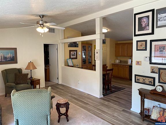Beautiful, well-kept home in Silverton's quiet Silver Cliff community. This 3 bedroom, two bath, 1296 sq ft home has open floor plan, vaulted ceilings and ceiling fans throughout, a large front yard, and an attached two-car garage. Included in the sales price are stainless steel kitchen appliances, the washer/dryer, a window AC unit in the primary bedroom, and a newer lawnmower. Open house on Saturday 7/15 from 11am to 3pm.