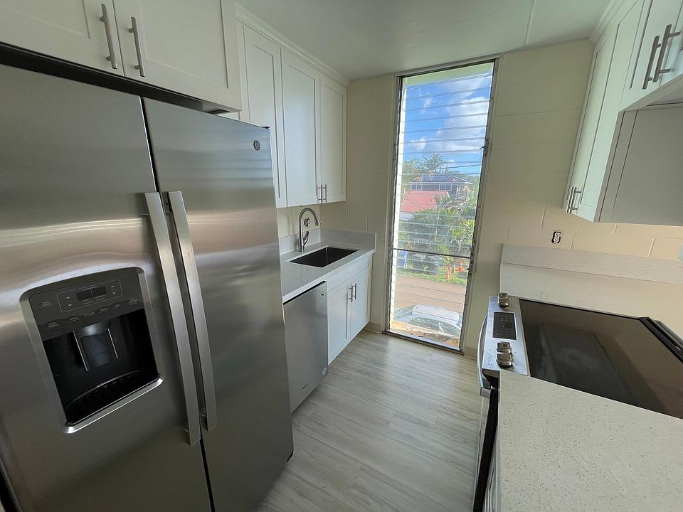 Welcome to this recently renovated unit in Wahiawa! The apartment underwent major renovations in 2022 and is in excellent condition. There are 3 bedrooms and one bathroom. The kitchen features stainless steel appliances including a dishwasher. Beautiful vinyl flooring, nice paint throughout, excellent quality cabinets with quartz countertops, LED lighting, and more. Enjoy the open concept floor plan with great natural lighting and mountain views. There are ceiling fans in every room bringing in a great breeze all throughout. There is one assigned parking stall and street parking. The property is close to Wahiawa, Mililani, the Northshore, and major employers like Schofield, NCTAMS, Wheeler, and NSA Hawaii. If interested please apply using the zillow online application, one per person 18 and over. Thank you! Tenant is responsible for electricity.