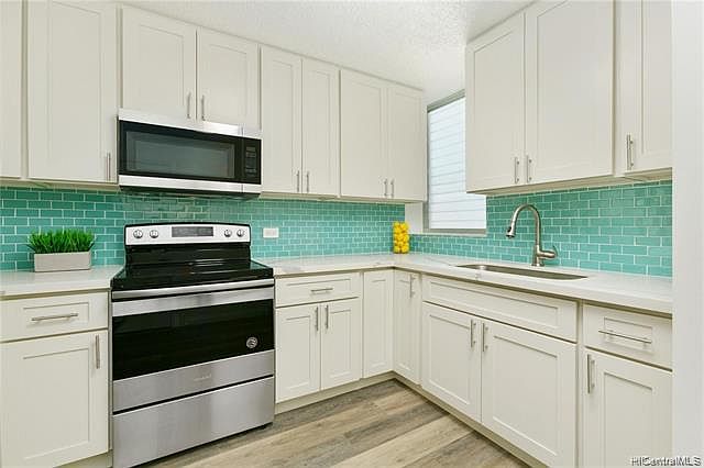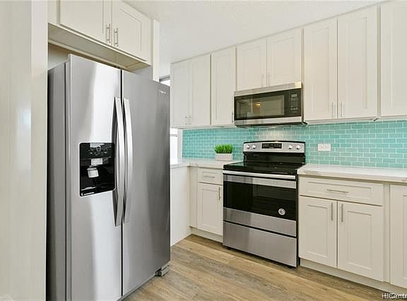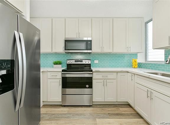 MOVE IN READY AND REMODELED beautiful unit in Salt lake just hit the market. Spacious 899 sq ft and lanai. Interior features vinyl throughout, white shaker cabinets w/soft closet drawers, upgraded quartz counters, "Tiffany" Blue backsplash, newly stainless-steel appliances (stove, refrigerator, microwave hood, water heater), paint, lighting, window jealousies, luxury vinyl plank flooring & many more. It's a Bonus on having newly washer and dryer inside the unit and bathrooms feature matching vanities with quartz counters. Enjoy the breeze in your spacious lanai and see the beautiful outdoors. Close distance to shopping centers, schools, military base and hospitals. Building is also VA APPROVED! Start calling your movers, you just found what you are looking for.