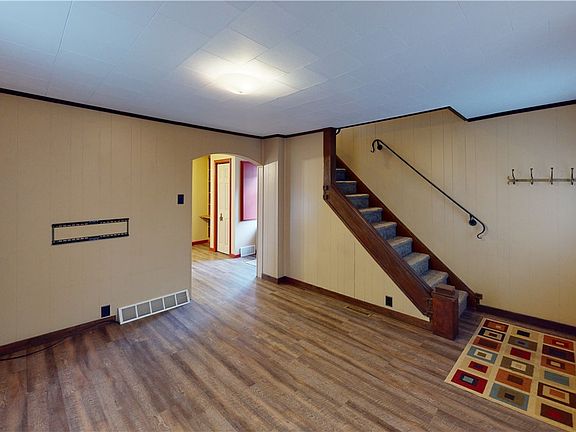 Charming 3 Bedroom East Butler Home~Covered Porch with Swing Welcomes All to the Front Door~Spacious Living Room with Archway to Dining Room~Open Concept Dining Room and Kitchen offers versatile living space~Custom Built in Shelving, Buffet/Dining Counter, and Full Pantry~Custom Compact Kitchen maximizes usable space~Wrought Iron Rail to Upper Level~Master Bedroom with Custom Closet~Remodeled Second Bedroom~Updated Full Bath withTiled Shower, Glass Doors, and Ample Storage~Third Bedroom perfect for nursery or home office~Pocket Doors, Neutral Color Scheme, New Flooring, and Recessed Lights Throughout the Home~Covered Rear Porch~Flat Lot~Detached Garage~Conveniently Situated in East Butler Borough~New Roof and Many Updates~