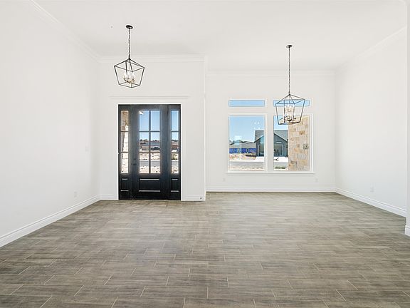 High ceilingsCrown moldingOpen floor conceptCustom cabinets with quartz