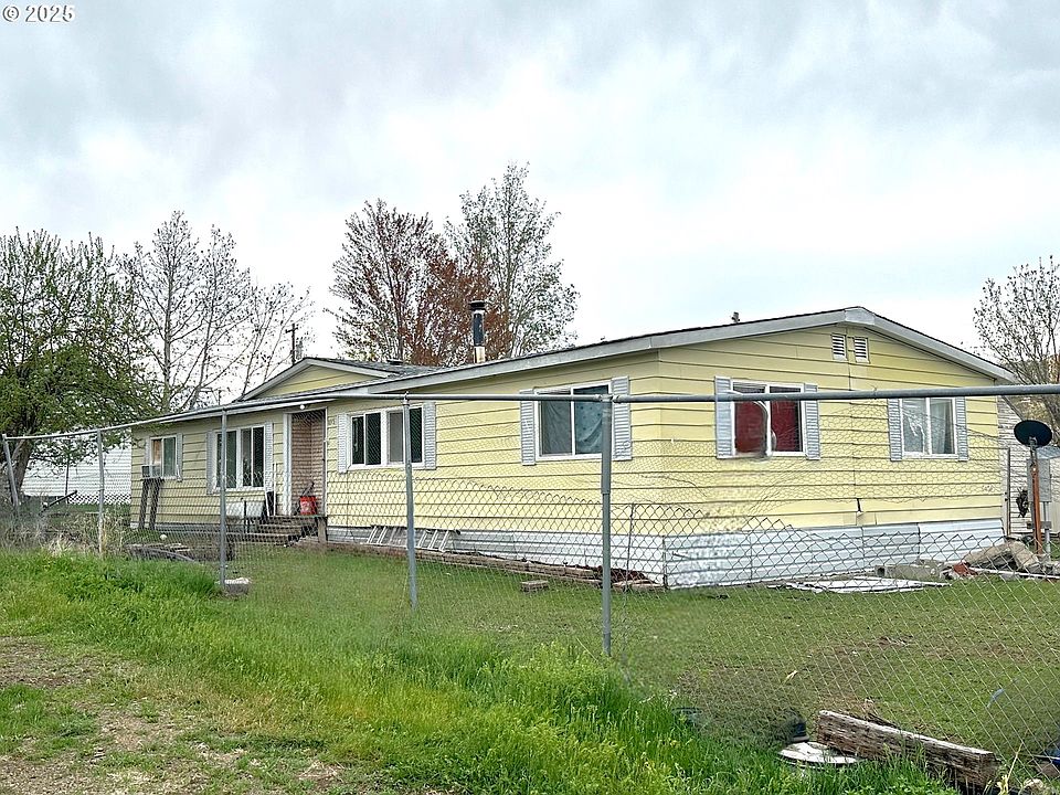 4 adjoining tax lots equal .57 acres in the heart of John Day recreation! One lot has a three bedroom double wide manufactured home with unique qualities, must see to appreciate. Chain link fence outlines entire 1/2 acre property containing fruit trees, asparagus, chicken coop, 4 out buildings, and lots of potential. Laminate flooring installed, and new water heater installed over the last few years. Selling As-Is.