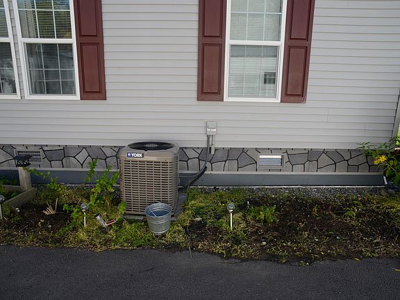 Rare find - 3 year old double wide with 1,200 sf (spacious open floorplan), 3 bedrooms, 2 full baths, gas fireplace finished with faux stone, sited at end of cul de sac with 50' of frontage on the Exeter River. This is just like a new home with 2x6 studs, drywall and crown molding throughout. Located in an over 55 community. Extra road frontage gives extra yard space and privacy with home sited with wide side facing the street. Enjoy all the luxuries of a top of the line home - larger kitchen cabinets (3'6" high), stainless steel appliances, tile surround on kitchen counters, 3' x 4'9" center island, central air, separate laundry room, luxury master bathroom with a large soaking tub, small round skylight, 2 sinks and a large step-in shower. Heating fuel is propane rather than the traditional blended oil. AND use your new very oversized custom deck (32'6" x 12'6") most of the year. It is outfitted with an overhead shower. Also comes with a custom built shed which has electricity. Also included insulated stone design skirts. If you like to fish, here's your opportunity to catch trout, bass and more right in your back yard (river is regularly stocked). Park is pet friendly. Future plans for residential dog park. Also new clubhouse. 2 parking spaces. Short distance to Amtrak train service to Boston or Portland right in downtown Exeter. Enjoy this beautiful paradise, which you won't find duplicated anywhere. HOA $770 per month and has a $50 discount to $720 with direct deposit.