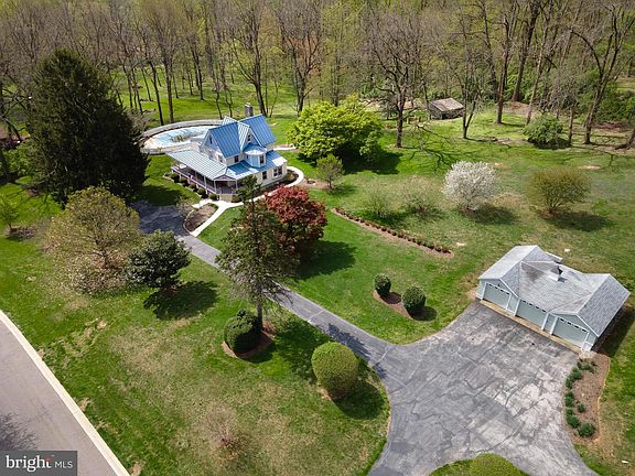Sophisticated Victorian Farmhouse situated in a tranquil setting surrounded by Ridley Creek State Park blends old world charm with modern convenience perfectly. Built in 1862, this elegantly updated home is historically named Cedar Rock Farm as there was a Cedar Tree growing from a rock that still stands on the property today. The wrap around front porch is welcoming and offers plenty of space to gather outdoors. Open floor plan showcases original handmade, oak flooring. Eat in kitchen is updated with custom cherry cabinets and granite countertops. Master suite has a hearthside sitting area to relax and take in the beautiful grounds as well as a dressing room with built ins and laundry area. Master bath is ceramic tiled, has a jetted soaking tub/shower and marble top double vanity. Additional bedrooms also with original hardwood floors access the luxurious tiled hall bath with marble double bowl vanity and large shower. Upper level boast a loft bedroom with original floors and built ins. Perfect space to be used as a home office or fitness room all while taking in views of the stunning landscape. Basement is finished with outside entrance to the pool area. Ceramic tiled powder room is easily accessible for pool guests. Mechanical features of the home include updated plumbing, electrical, HVAC (2017), house generator. Heating system has 7 zones, central air has 2 zones. In ground pool has a newer pump and filter. There is also a pool house with outdoor shower, storage shed with hot water and electric, two level barn and a detached three car garage. Beautiful home, lovingly maintained with endless possibilities. MUST SEE