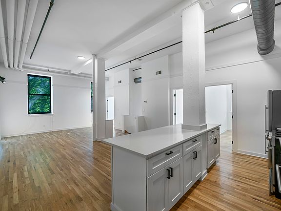 Photos show finishes of Brand New Renovation and similar layout in the building. Please reach out to Listing agent for Exact Video Tour of the Apartment. NEW DUPLEX LOFT with PRIVATE BACKYARD 15 Ceilings! Move in Ready $2500 Security Deposit for Qualified Applicants. Rarely Available Large Open DUPLEX Spacious 3 Bedrooms/2 Bath Open Loft with Soaring Ceilings in an elevator building. Bedrooms are Queen/King Size. Open Kitchen layout with a high top breakfast bar area and full size appliances. Beautiful Open Living Space with plenty of Open Space for a large sectional couch and much more! Separate Dining Space as well off the kitchen for a high top table or round table. Central air, hardwood floors throughout, Laundry in the building. Located right across the street from Columbus Park and moments away from Traders Joes, 10th Street Pizza, Mark Daniels Barber Shop and so much more! Pets welcome for $250 Fee, $50/Month.