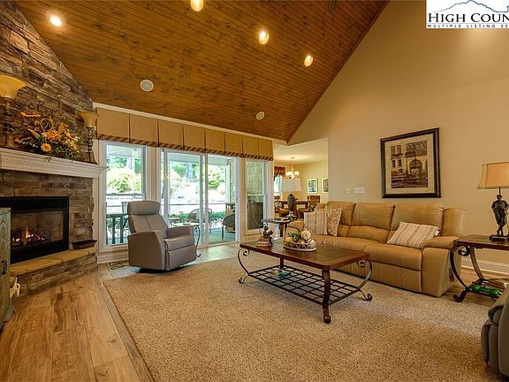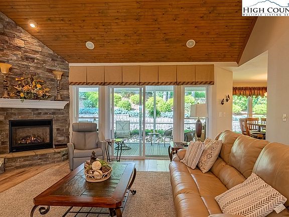 Pristine, low maintenance home in High Meadows Golf & Country Club. You'll love the 1-level living, open floorplan and oversized 2-car garage. The upstairs bonus room area is accessible through the finished garage. The bonus room, full bath and large walk-in closet are IN ADDITION to the 2130 sq. ft. on the main floor. Kitchen features stainless steel appliances, tile floors and granite counter tops and opens to a breakfast nook overlooking the landscaped back yard. A separate laundry room leads from the garage into the kitchen. Open great room with vaulted tongue-and-groove ceiling and stone fireplace adjoins the formal dining room. Primary bedroom features a cathedral ceiling, double walk-in closets and spacious bath with walk-in shower and separate water closet. Two additional ensuite bedrooms with walk-in closets are located on the opposite side of the home. A half bath is conveniently located in the hallway leading to the guest rooms. If you enjoy spending time outdoors, you’ll love the screened-in porch that leads to the large, updated deck. Owners have thought of every detail in this well-loved home! There's also tons of floored attic space for additional storage. This Roaring Gap, NC location is near renowned wineries and potteries, and provides just the right balance of seclusion and convenience. Schedule your appointment today to see this move-in ready home! Home qualifies for a reduced initiation fee to High Meadows Golf & Country Club if you join HMG&CC within 60 days after closing.