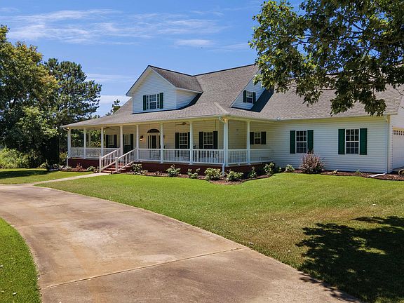 Come right in and make yourself at HOME! Built straight from a dream is this spectacular southern property in Woodland, AL. Sitting on 1.6 acres of perfectly manicured landscaping with trees, this home has over 3,000 SF of home that is well-kept and loved greatly. The large front porch has room for multiple rocking chairs and 2 porch swings on each end. Walking in through the front door you will find the foyer, dining room that leads to the kitchen, cozy living area with a fireplace, master suite, one bedroom and full bathroom on the main level. Two bedrooms and another full bathroom are upstairs along with a small study with views of the front yard. The basement has a finished bonus room with a half bathroom. There is a large amount of storage space in the basement with a garage door on one end for the ability to store large items.