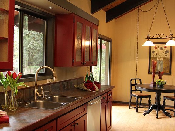 Situated on 1/2 acre and right next to 1200 acre ranch in Williamson Act. Walk through the front door into the handsome living room with bamboo flooring, vaulted ceilings and a wood stove. 4 bedrooms, 2 bathrooms, although the 4th bedroom would also make a wonderful family room or office with its fully-wired nook, built-in bookshelves, and sink. Monitor heater and wood stove warm the home quite nicely. The lush backyard includes a raised garden for growing vegetables, a separate studio/workshop (not plumbed) for the artist or yoga master in you, a horseshoe pit, campfire ring, and generous slate patio just steps from the kitchen. The hot tub is tucked privately off to the side, through a charming arbored path. The front yard borders a forested 1200 acre ranch. Views of Mount Shasta and Black Butte from the yard. You'll want to spend as much time outside as you will inside. Peaceful and inviting. Quite simply, lovely!