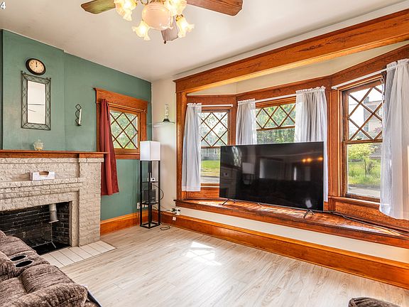 - Features: Bay Window, Ceiling Fan, Fireplace, Living Room Dining Room Combo