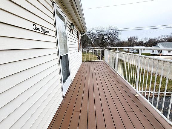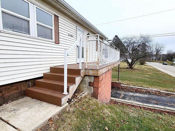 New Front porch 2021. Large living room with a wall heater (not sure if it works or not) one end can be used as a dining room and Kitchen has a breakfast bar. In a hallway closet is the Furnace and another closet is the washer/dryer which work and stay. Behind the door in the Bedroom is the electrical box. There is another room 7x10 that has the entrance to the basement or the basement can be entered from the garage and ground level. There is a deck on the backside. Home is in need of repairs.