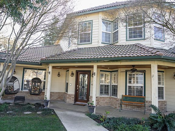 Move-in ready and truly turn-key—just hang your clothes and start enjoying this beautifully appointed home. The front patio features a tongue-and-groove ceiling with lighting and built-in speakers, plus hanging chairs perfect for morning coffee or relaxing with a book. Inside, the spacious kitchen shines with high ceilings, a large island, walk-in pantry, window seating with storage, pot filler, and under-cabinet lighting. The living room offers a cozy fireplace, and a flex room with glass double doors is ideal for a dining room, office, or secondary family room. The expansive primary suite is on the main level and includes a large bath with a corner jetted tub, walk-in shower, private commode, generous counter space, and walk-in closet. Vaulted ceilings enhance many downstairs rooms, with extra storage tucked neatly under the staircase. Upstairs are three bedrooms and a large full bathroom. The backyard is perfect for entertaining with a built-in outdoor kitchen, countertop firepit, corner deck, additional firepit, spa-ready electrical, and low-maintenance landscaping. Additional features include canned lighting throughout, freshly repainted interior, new upstairs carpet, ceiling fans, and built-in speakers inside and on the patios. An extended side patio cover provides extra storage space. The three-car garage offers great storage, extra lighting, and even a TV. All six TVs may stay with a strong offer. Enjoy the benefits of OWNED SOLAR, to be paid in full at close of escrow, all located on a quiet cul-de-sac waiting for you to call it home.