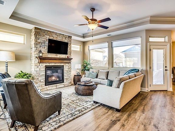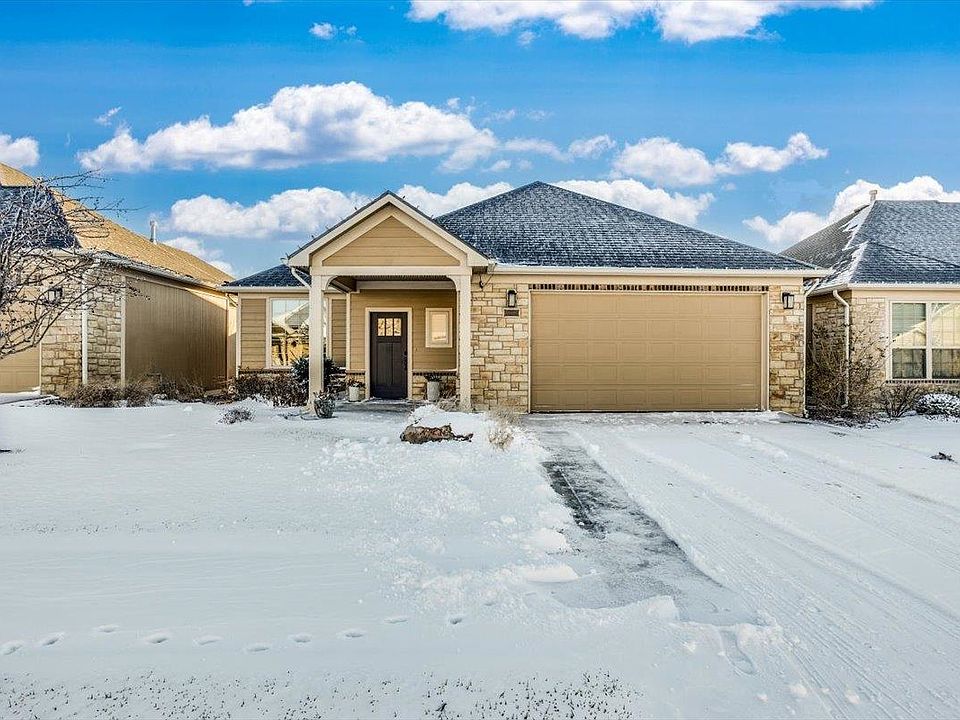 Welcome Home to this Wonderful Patio Home with Covered Front Porch and Specialized Design with a Welcoming Extended Living Room with a Cozy Stone, Gas Fireplace and Bright Windows all with Custom Blinds. Oversized 2 car Garage has Epoxy Floors and extra height garage door. Island Granite Kitchen Complete with All Appliances. Walk in Pantry with Built in Desk. Plenty of Room for Bar stools and an oversized table that looks out to the courtyard Private Patio. Large Laundry room includes a utility sink, hanging area and storage cabinets. Owners suite includes Plenty of room for a King sized bed and dressers. Attached Den for Tv and Bird Watching and could be used as a Hobby room. Bathroom is spacious with double sinks a linen closet, roll in Full Tile Shower, Walk in Closet doubles as a safe room.