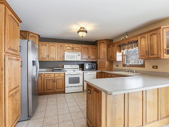 Original owners offer this FIVE ACRE estate w/ TWO garages! Tucked away on a quiet corner lot, and custom built in 2003, this 3 BR 2.5 bath home just needs some paint & flooring to restore it to it's former glory. Charming wrap around covered porch & HUGE 5 acre yard offer unlimited potential! Not one, but TWO garages (2 car attached + 3 car detached) offer plenty of storage for cars, 4 wheelers, motorcycles & more. GENEROUS room sizes (master 13x20) with trey ceiling, walk in closet & private master bath w/ soaking tub & separate shower. Two more oversized bedrooms are separated by a jack & jill bath. Unique loft runs the length of the house & overlooks the foyer & living room. Kitchen offers custom cabinets, Corian counters & breakfast bar seating, all appliances stay. Solid 6 panel doors, hardwood floors, and convenient main floor laundry! Cozy corner gas log fireplace in the family room. Basement is partially finished & awaiting your ideas. Home has great bones but needs a little TLC; and is priced accordingly. Sold strictly AS-IS; cash or conventional loans only.