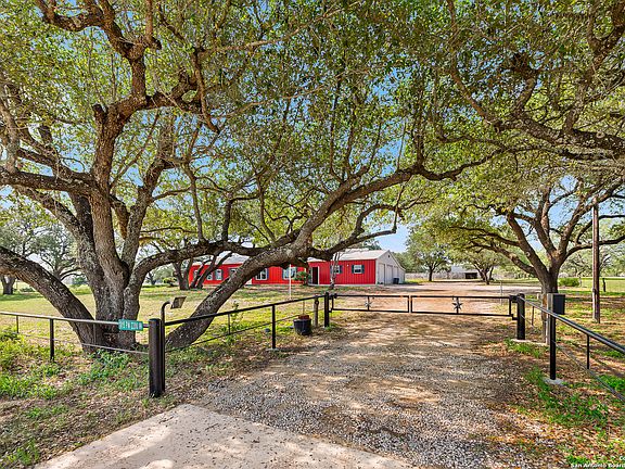 Come tour this barndominium home located just 3 miles from Devine, less than half a mile from the Devine Airport, and approximately 25 minutes from San Antonio. Situated 2.15 acres, this unique property offers both peaceful rural charm and convenient access to town and city. This home was built with a metal roof and siding for durability and low maintenance. Surrounded by mature oak trees. The shaded patio and yard can create a peaceful setting ideal for outdoor relaxation or recreation. Inside, you will find 3 spacious bedrooms and 3 full bathrooms, including a massive 32' x 12' primary suite with a nice-sized primary bathroom. The primary also features patio access through a sliding glass door as well as a versatile flex room connected to the primary suite that can be accessible via the main hallway - perfect for an additional office or creative space. A cozy living room with a beautiful fireplace can create a cozy atmosphere for almost everyone. The kitchen was updated with granite countertops, new pantry, and an already built-in desk or craft/workspace. Enjoy beautiful views from the kitchen window, overlooking a Christmas tree farm directly across the home. This home has been lovingly maintained and thoughtfully upgraded, blending comfort, function, and charm in a beautiful country setting. Schedule your showing today-this home has so much to offer!