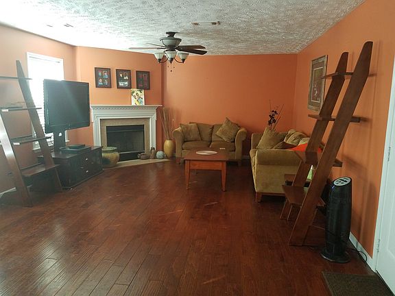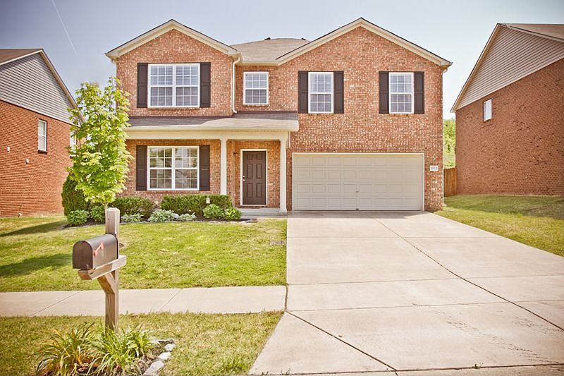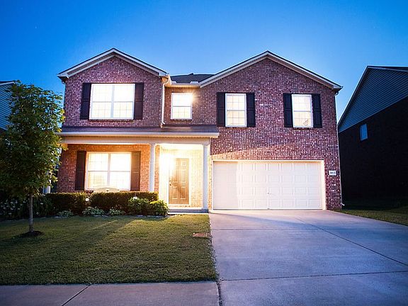 This all-brick home features hand-scraped hardwoods throughout the downstairs. The open floor plan has the kitchen flowing into a large dining area and living room, accented with a wood-burning fireplace. Also downstairs is a study with french doors and a formal dining area, currently used as a sitting room. Upstairs, the oversized master bedroom with trey ceiling, leads to the master bath with a garden tub, shower, double vanity and large walk-in closet. Three additional bedrooms are also upstairs, as well as a full bath. Two bedrooms feature walk-in closets. The large, flat back yard is fenced and backs up to a rock wall. Additional commodities are an attached pergola, patio and children's playset.