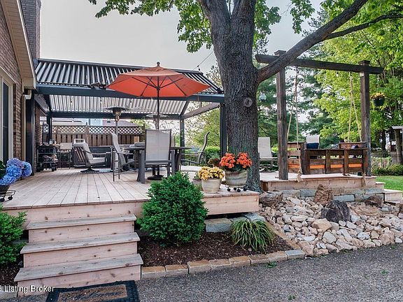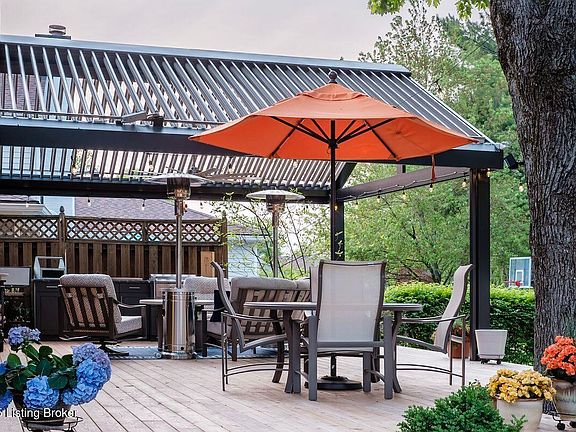 of the fire pit. The large deck has cedar deck boards with hidden fasteners, a StruXure