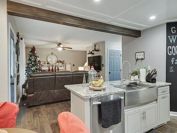 - Kitchen Features: Breakfast Bar, Eat-in Kitchen, View to Family Room, Stone Counters, Kitchen Island, Breakfast Room, Cabinets White