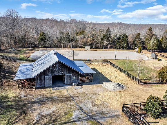 Custom-built home & farm in Dickson Co. w/ so many amazing features! Multi-Generational Possibilites w/4 Bedrooms & 3 Full Baths on the Property! Larger Walk-in Closet in Primary Could be Converted to 3rd Bedroom in Main House. The majority of the 7.93 rolling acres is fenced for horses. There is a 4-stall barn w/ a full hayloft, 12x12 tack room & automatic fly spray system. Beyond the barn is a riding arena equipped with large mirrors & LED lighting. The property also has beautiful mature landscaping and a vineyard. Inside the house you will find soaring ceilings in the living room, double ovens in the kitchen and a primary suite that encompasses the entirety of the 2nd level of the home. A detached garage features space for 3 cars & a large covered patio area with a wood burning fireplace. Above the garage is a spacious apartment with 2 additional bedrooms, a full bathroom & living/dining area. Located on a dead-end road close to Montgomery Bell State Park & 5 minutes from I-40.