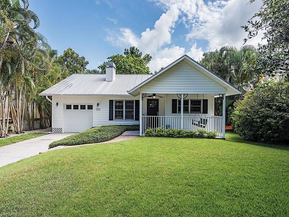 H.12069 - Charming Olde-Florida cottage styled home built with Poly-Steel construction and ideally situated on a centrally located dead-end street with mature landscaping. This 3-bedroom home feels much larger than its 1,657 sq.ft of living space with its vaulted ceiling, open great room floorplan concept and interior with plentiful amount of natural light. Features include metal roof, key-less entry, Chicago antique brick fireplace, updated kitchen with absolute black brushed granite countertops and shaker style cabinetry, central-vac, double insulated garage door, walk-in closet in Master suite, custom closet finishes and more. Oak Knoll is centrally located equidistant to Mercato and the 5th Ave shopping/dining and within a short drive to the beach. This is a must see!