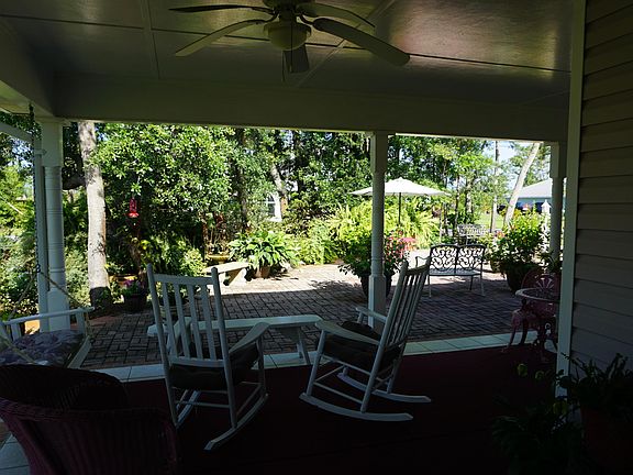 Great house on well manicured and landscaped corner lot in Lynn Haven. This house has it all with a large kitchen with island, white cabinets, separate wall oven and stove. Eat -in kitchen dinette and lots of storage. This house offers a big family room, dinning room and foyer. There's a Mancave or TV room and a she cave or office or extra bedroom. The laundry is large with cabinets and sink. Huge master bedroom with walk-in closet and master bathroom has vanity and a custom tile shower. The house has attached garage and a detached garage workshop. Outside offers front and back porches and a enclosed screen porch with beautiful land scape on all sides of house and great for privacy and entertaining. While this house is listed 2 bedroom, the she-cave or office can be used as 3rd bedroom.